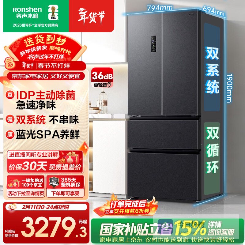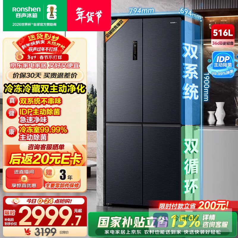 容声513L法式多门冰箱pro双系统双循环IDP主动除菌一级能效风冷无霜变频大容量BCD-513WD18MP国家补贴¥