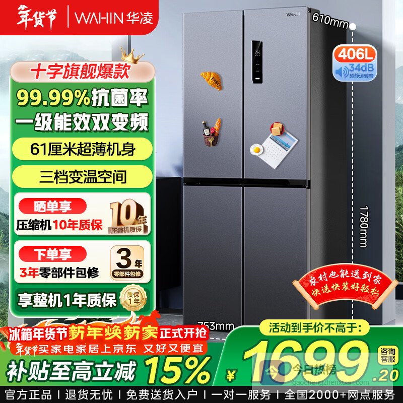 第1款:华凌426/525/520这冰箱容量确实大,406L,冷藏室195L,冷冻室154L,还有57L变温区,一家人的食材基本能安排明白。内部还挺讲究,分了15个格子,方便分类放东西,找起来也省事。
