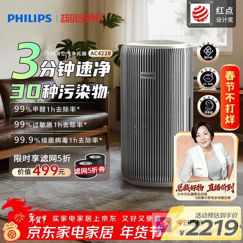 飞利浦和戴森性价比高的型号:推荐一:飞利浦智能空气净化器AC4228/04