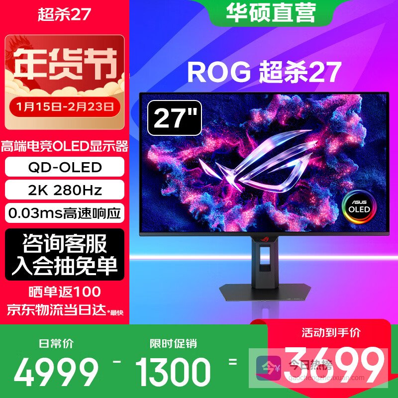 华硕ROG 27英寸电竞电脑显示器显示屏 超频高刷 G-sync 支持旋转升降 超杀27【XG27ACDMS】2K OLED¥