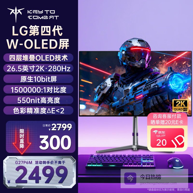 KTC 26.5英寸2K 280Hz LG第四代OLED四层堆叠 0.03ms10bit 逐台校色音响硬件防蓝光电竞显示器G27P6M¥