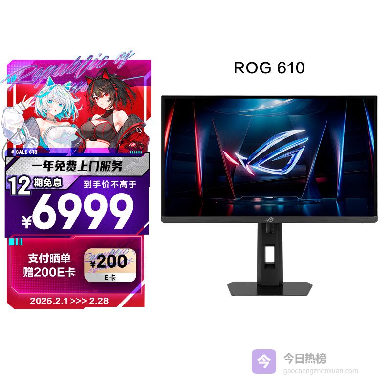 华硕ROG 610 XG248QSG 24英寸高刷显示器电竞超频610Hz HDR400G-SYNC HDMI 2.1 90% DCI-P3 0.1ms响应¥