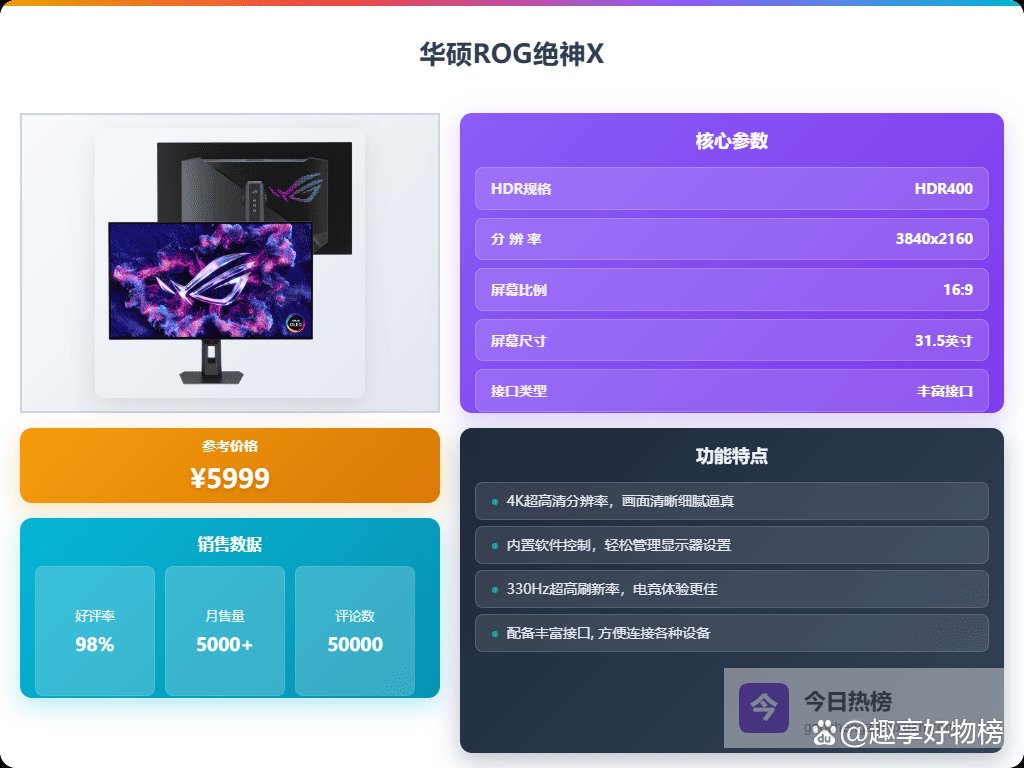 总的来说,华硕胜在品牌、技术和做工,适合追求极致体验的用户;KTC胜在性价比,适合预算有限但又想体验主流功能的用户。选哪个更好,还是要看你自己的实际需求和预算。接下来,就给大家推荐几款具体型号,大家可以结合自己的情况,好好对比一下。