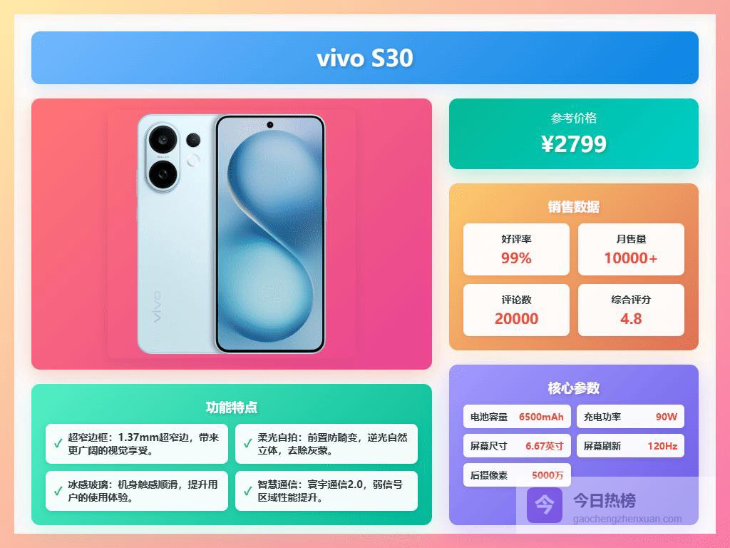 vivo S30 12GB+512GB 薄荷青 国家补贴 多彩轻薄直屏 超级潜望长焦 学生 live图 AI手机¥