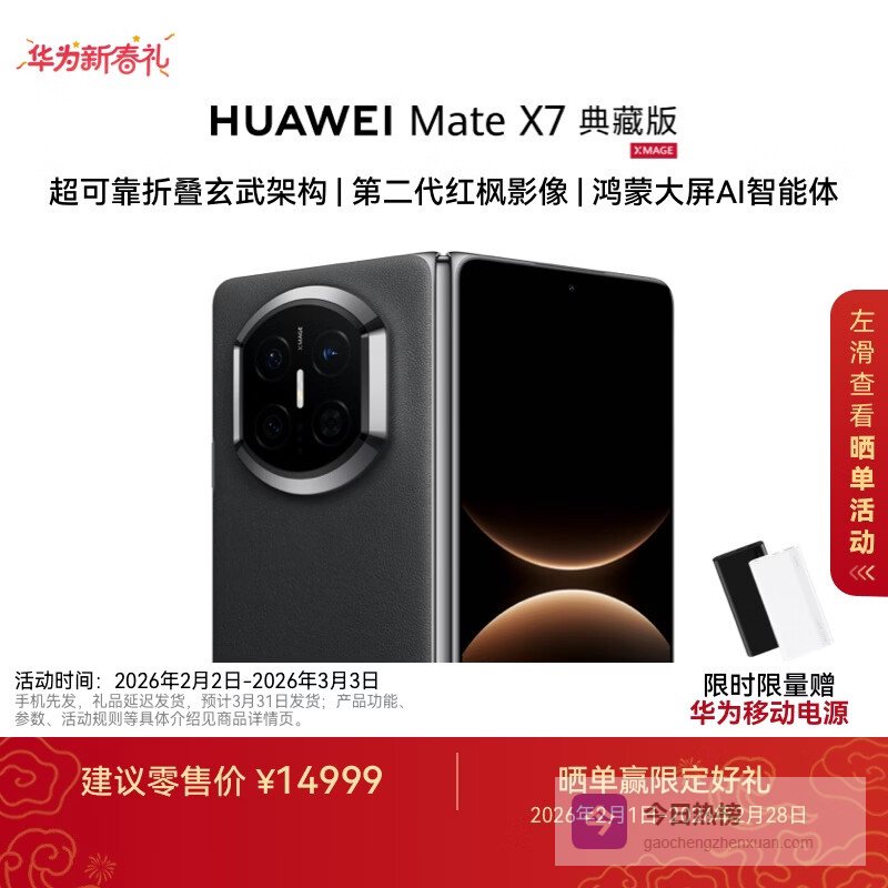 HUAWEI Mate X7 典藏版 麒麟9030 Pro 16GB+512GB曜石黑 超可靠折叠玄武架构 华为折叠屏鸿蒙手机¥