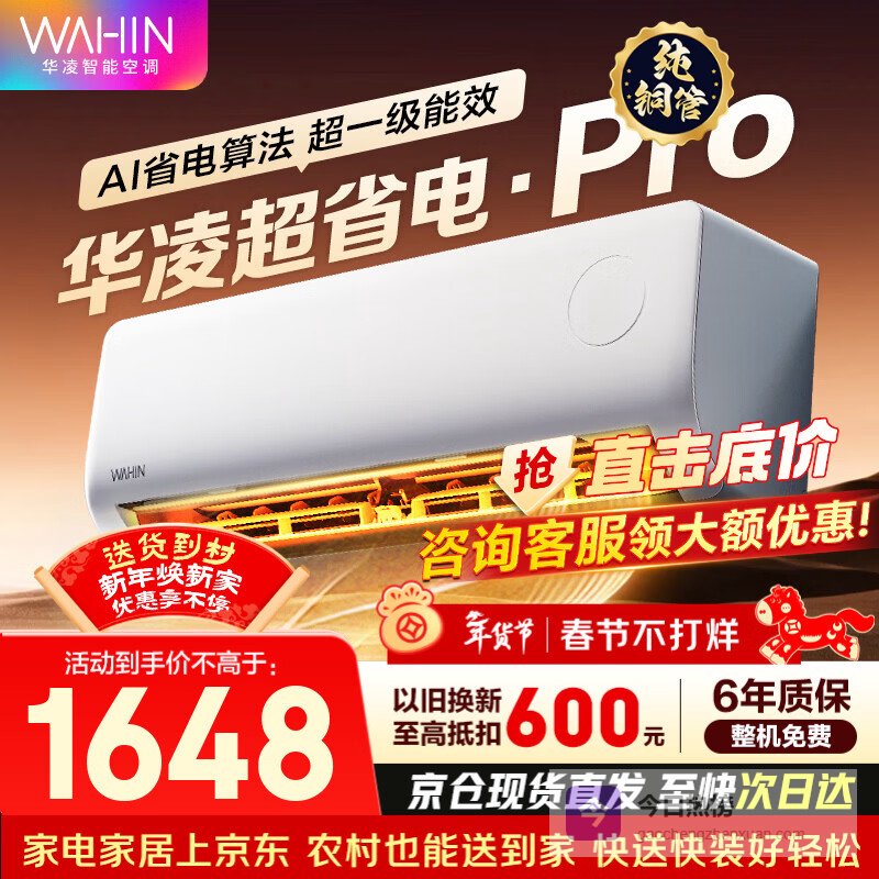 【品牌直营】华凌空调大1.5匹超省电Pro超一级能效华凌神机二代Pro变频冷暖以旧换新大1.5匹一级¥