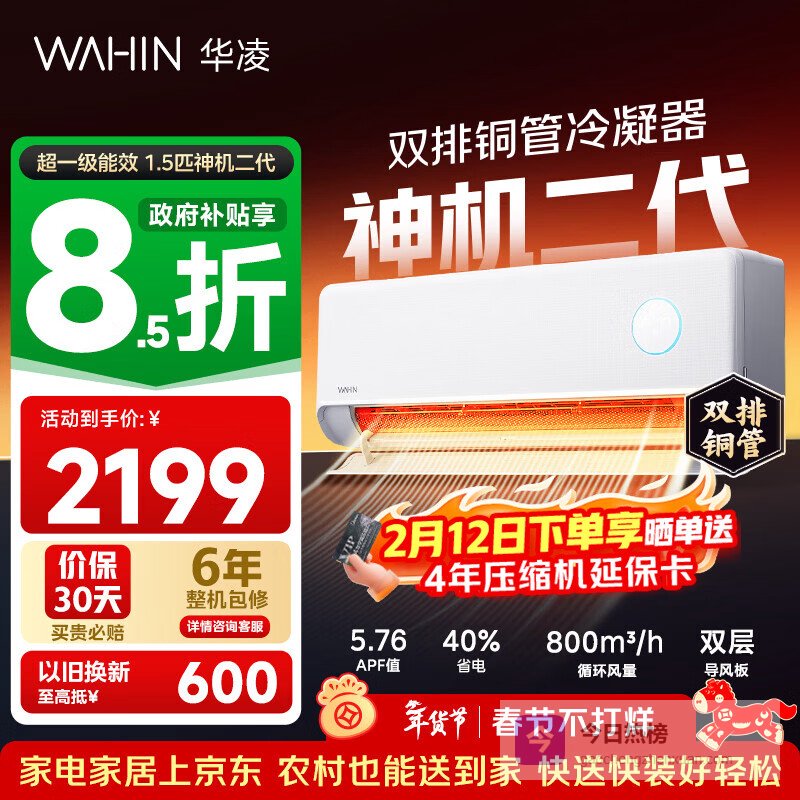 【品牌直营】华凌空调神机二代大1.5匹空调双排铜管超一级能效家用冷暖智能变频空调家电国家补贴以旧换新¥