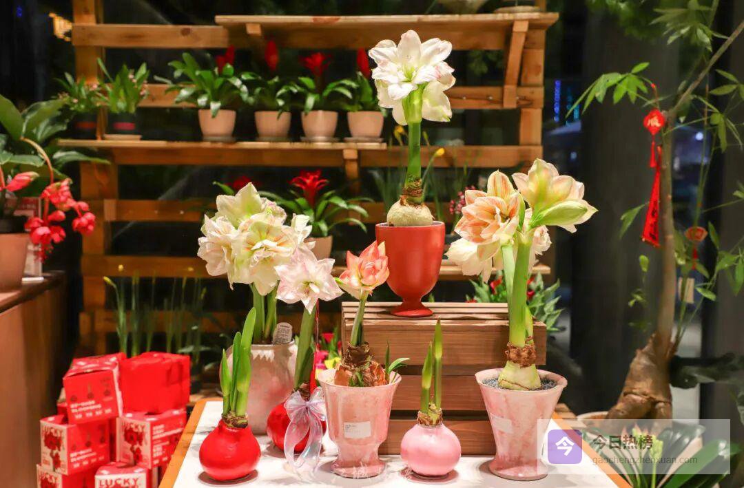 如果说蝴蝶兰是颜值担当, 朱顶红则是近年走红的新宠。冷库休眠、春暖发芽,约一个月即可抽箭开花。蜡封种球更省心,不用浇水,温暖明亮处就能从正月一路火到二月,寓意“红火开年”。