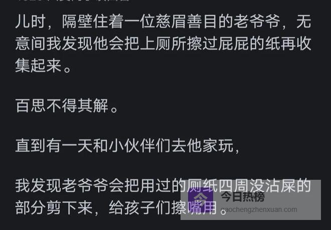 原来单位老板的母亲,给我们食堂做饭,剩饭做成炒饭后必须先盛炒饭才能盛新的大米饭,原因是要用新大米饭把碗里的炒饭的油蹭干净,炒菜放工业盐,说多吃点盐可以少吃点菜,做面食必须把面袋子翻过来在上面擀饺子皮,要把上面的面粘干净,副处级退休,十二年前退休工资6000 。