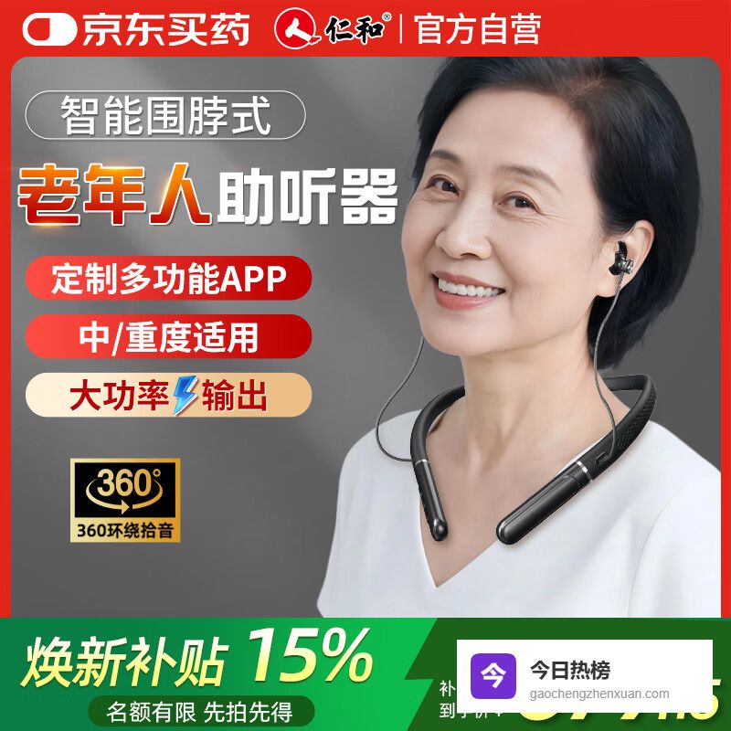 仁和围脖式助听器老年人专用正品中重度耳聋耳背入耳式1/台KT-NB010¥