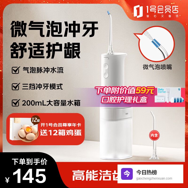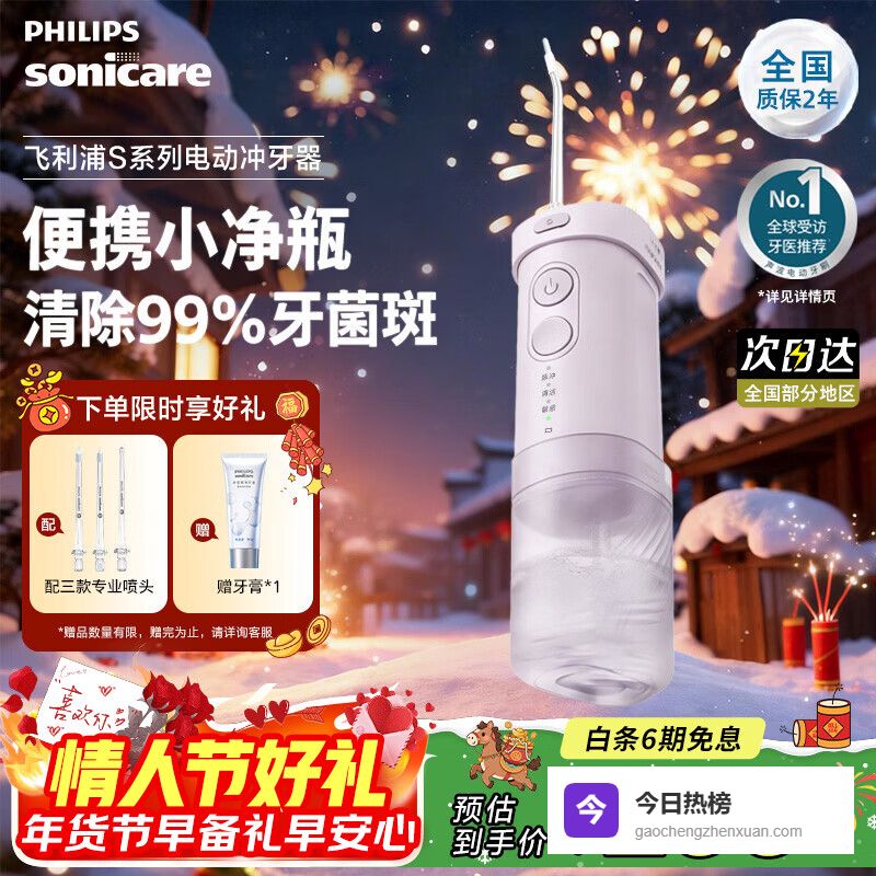 三、飞利浦想象一下,用飞利浦HX3331/03冲牙器一冲,高效清除达99.7%的牙菌斑,牙齿瞬间亮白好几度。它的1400次/分钟高频脉冲像是在帮你给牙缝做深度清扫,连藏在角落的食物残渣都跑不了。试了下,冲得干干净净,牙龈也有点“被按摩”的感觉,挺爽的。
