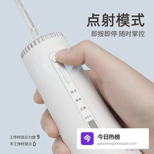 它的三种不同水流模式挺贴心的,轻柔模式适合敏感牙龈,脉冲变换带来按摩感,强力模式则是“深度清洁”派的专属。水牙刷喷头设计还考虑到儿童和孕妇,360°旋转喷嘴让你从各个角度都能清得干干净净,嘴巴里“扫地出门”就是这么简单。