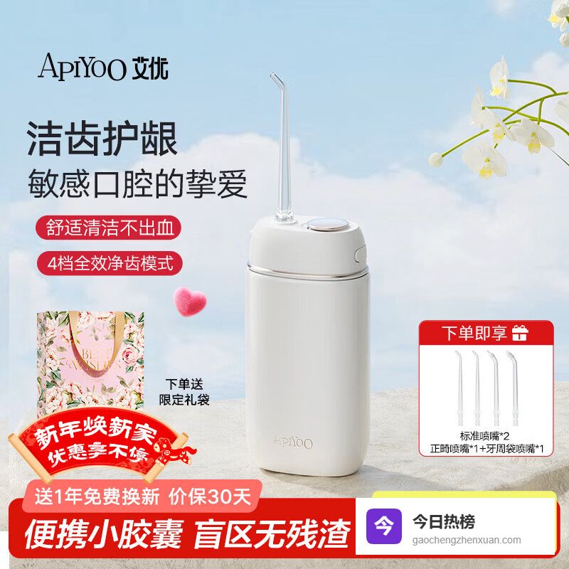 ApiYoo艾优X1电动冲牙器洗牙器 伸缩便携式专业手持式水牙线家用声波牙齿冲牙器清洁正畸用 新年情侣礼物¥