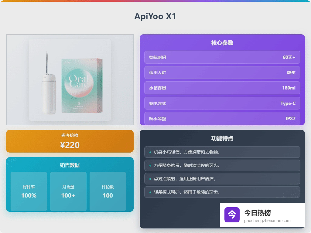 七、牙宜生这款牙宜生T1冲牙器用超声波科技帮你把牙缝里的食物残渣“吹走”,特别是那些平时牙刷难以触及的死角。超细水流轻柔地冲刷牙龈沟,让口腔感觉像被SPA护理过一样清爽,没有“藏尸”的死角。即使是牙套党,也能轻松应对牙箍周围堆积的小残渣,算是口腔清洁的贴心小助手。