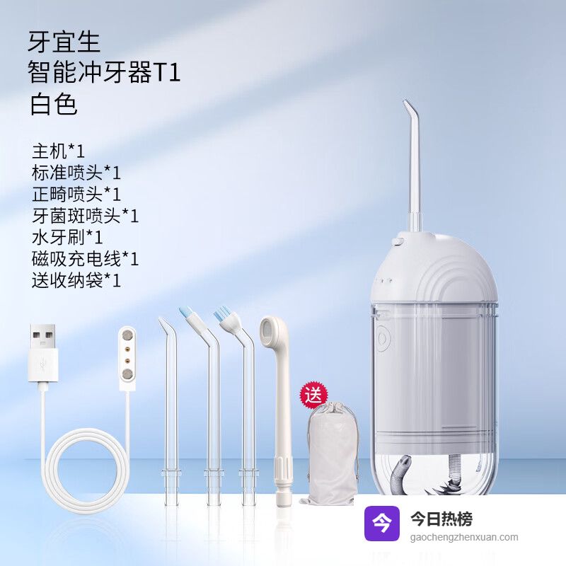 牙宜生【年会礼品】电动冲牙器家用水牙线正畸旅行便携洗牙器儿童超声波清洁口腔牙菌斑清洁器中秋礼品 T1白色磁吸充电款 4支喷头¥