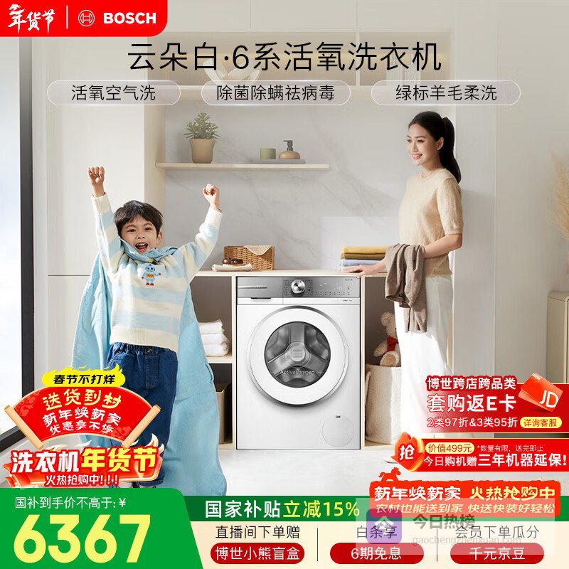 1、博世6系10KG洗衣机这款洗衣机配备了活氧空气洗功能,能有效去除异味、杀灭病毒,呵护每一件衣物的健康。其活氧水洗技术确保洗净的同时,衣物更加清新自然。特别设计的羊毛洗程序,可以像手洗一样温柔呵护羊毛衣物,避免缩水变形,获得不少用户的喜爱。
