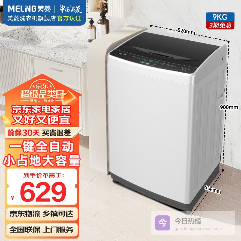 美菱(MeiLing)洗衣机9公斤家用全自动大容量波轮洗衣机 防缠绕一键洗可快洗节能省水低噪健康桶自洁小占地洗衣机 波轮 9kg¥