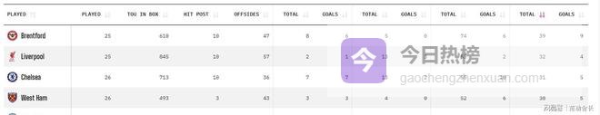 3,头球攻门,布伦特福德通过头球形成74次攻门,英超第二多,形成了6个头球进球。