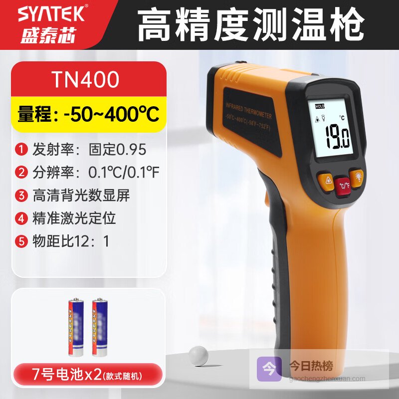 【品牌直营】SYNTEK油温枪厨房专用测温枪温度计水温测量计红外测温仪工业烘焙商用TN400工业款-¥