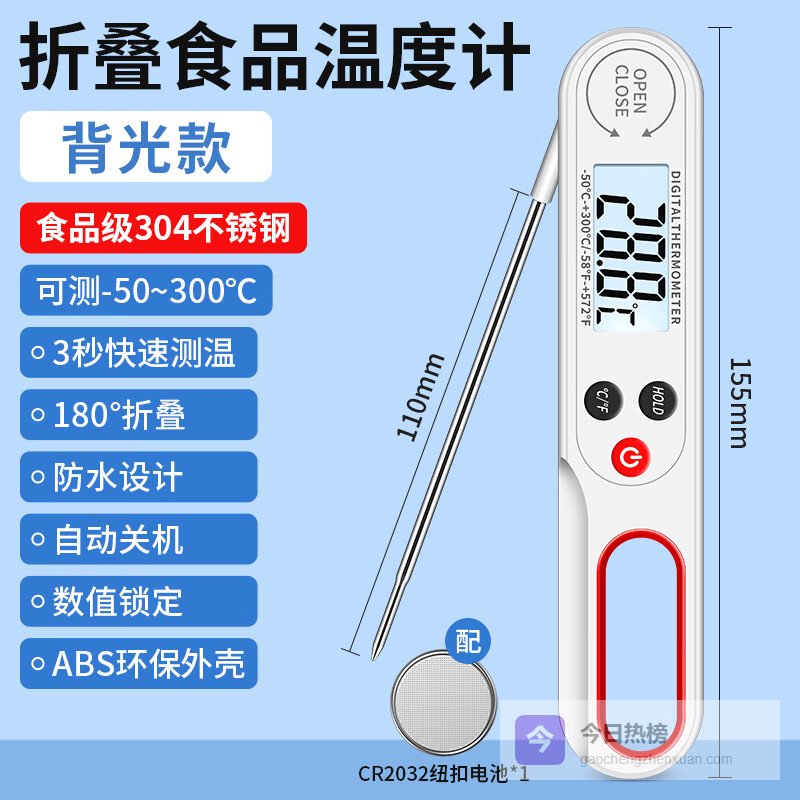 【品牌直营】鹿仙子食品温度计厨房烘培油温计测婴儿奶温水温计面包测量计测温计探针【背光款】折叠食品温度¥