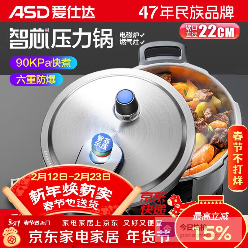 亮点:钢铝钢复合锅底、90KPa高压快煮、多重安全保护