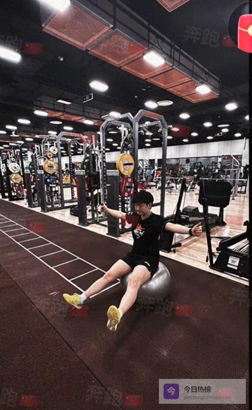 瞧见翔哥独自领着好几个队员在训练呢,这健身房环境还挺棒的。莎莎坐在健身球上,这估计是在练平衡能力吧。莎莎不管练啥项目,那态度都特别专注。如今啊,莎莎常常会拿着她的“金箍棒”在比赛前做练习。