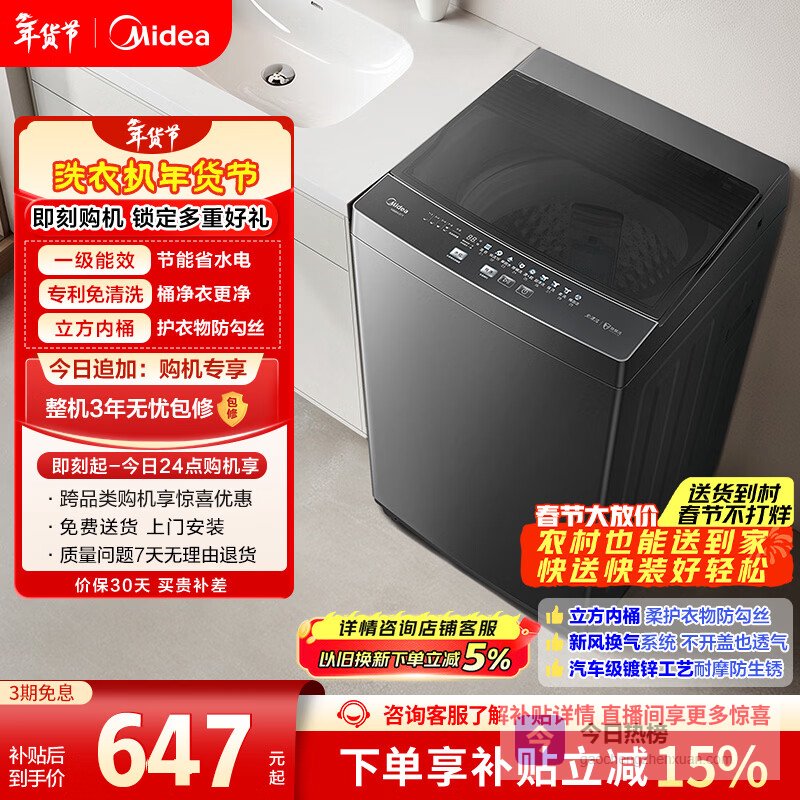 【京东自营】美的随心洗波轮洗衣机全自动8公斤小型家用免清洗一级能效MB80V37T以旧换新国家补贴京¥