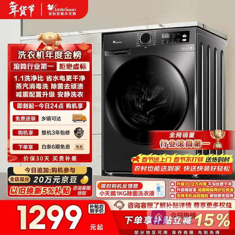第二款:小天鹅TG100A全自动滚筒洗衣机 10公斤