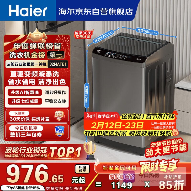 洗衣机哪个牌子质量好,性价比高?型号推荐!第一款:海尔波轮全自动洗衣机EB100B32Mate1
