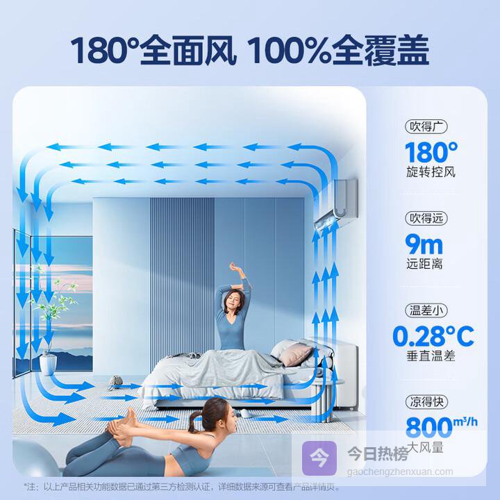 ②它支持AI酷省电算法,能根据室内温度自动调节功率,减少温度震荡,既省电又舒适。另外,1760m3/h的循环风量,配合150°大广角送风,能让全屋快速降温或升温。