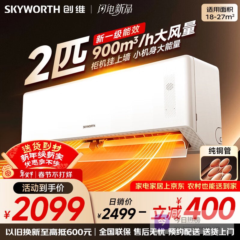 创维空调2匹新一级能效 国家补贴变频冷暖客厅卧室壁挂式省电纯铜管挂机以旧换新KFR-46GW/V3AA1A-N1MA¥