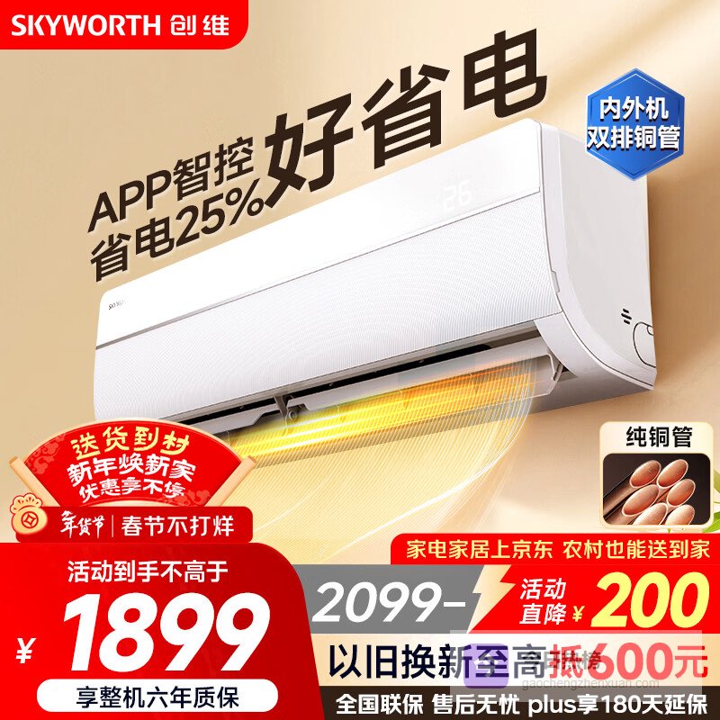 创维空调大1.5匹京智超省电新一级能效 国家补贴变频冷暖巨省电纯铜管挂机以旧换新KFR-35GW/V3GM1J-N1¥