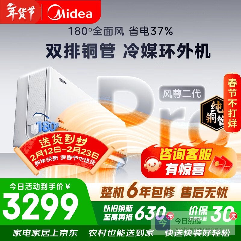 ①这款空调搭载了10.3cc美芝压缩机和双排铜管换热器,换热效率高,制冷制热速度快。它支持180°旋转导风板,能实现天幕冷风和地毯热风,送风更柔和。