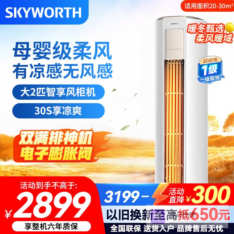 创维空调柜机大2匹大3匹智享风超省电新一级能效 变频冷暖巨省电立式柜机以旧换新 大2匹一级能效京东严选省电28%¥