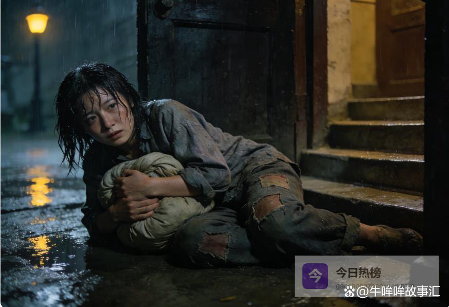 门外站着个姑娘,头发贴在脸上,雨水顺着下巴往下滴,滴在她抱着的包袱上,麻绳勒得发白。
