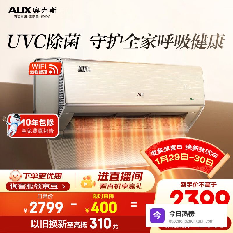 【京东自营】奥克斯空调御风Pro大1.5匹新一级能效变频冷暖铜管空调UVC除菌挂机国家补贴KFR-3¥
