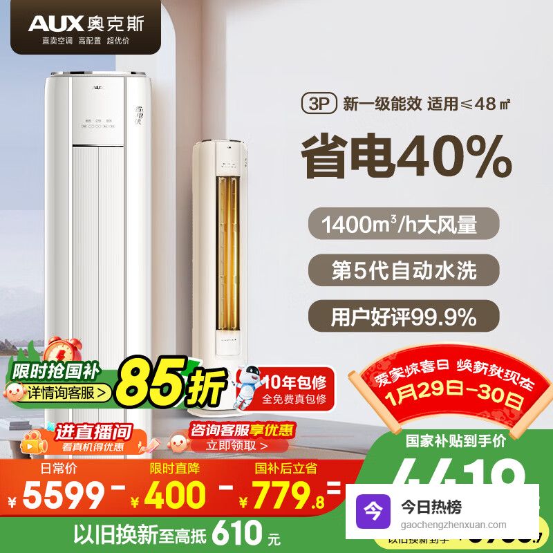 【京东自营】奥克斯空调省电侠大3匹新一级能效变频冷暖铜管空调客厅防直吹柜机国家补贴KFR-72LW/¥