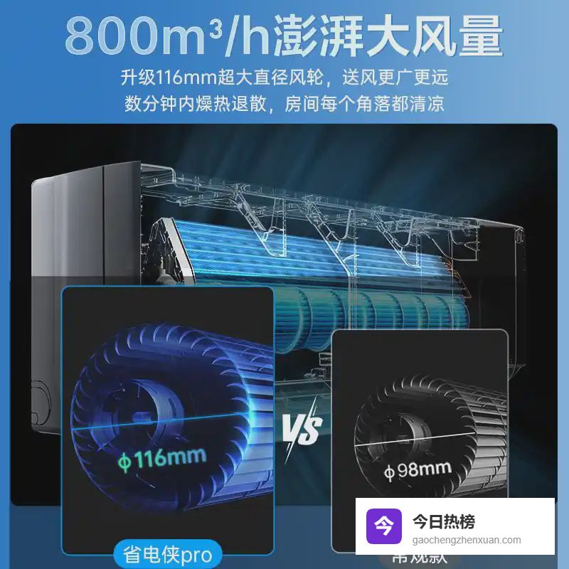 1️⃣强劲的制冷能力:910m^3/h的大风量以及116mm超大直径风轮,迅速带来清爽的空气感受。无论是炎热的午后,还是潮湿的夜晚,都能让任何空间在短时间内变得凉爽宜人,为家庭带来极致的舒适体验。