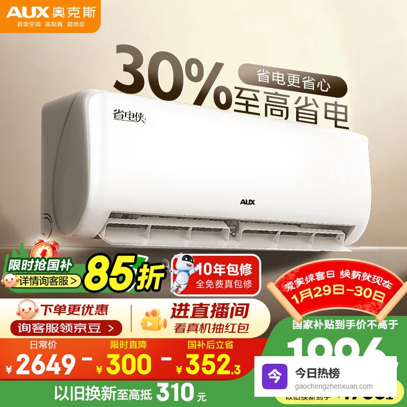 【京东自营】奥克斯空调省电侠大1.5匹新一级能效变频冷暖节能防直吹铜管空调国家补贴KFR-35GW/¥