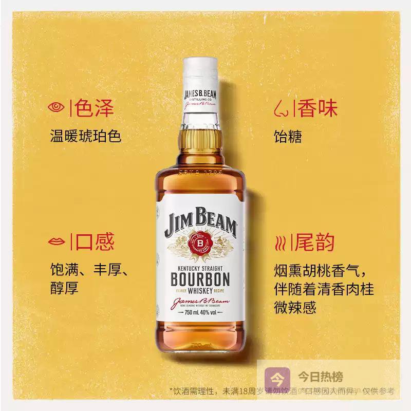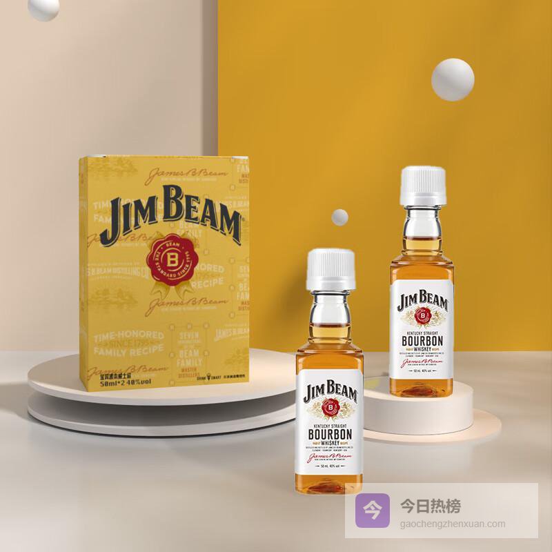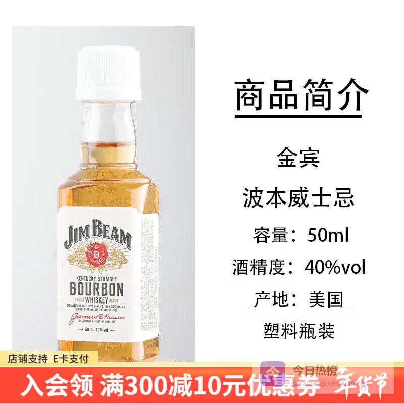 【品牌直营】金宾波本威士忌美国进口洋酒调和型白占边黑麦/蜂蜜味/苹果味酒送礼小酒伴50ml¥