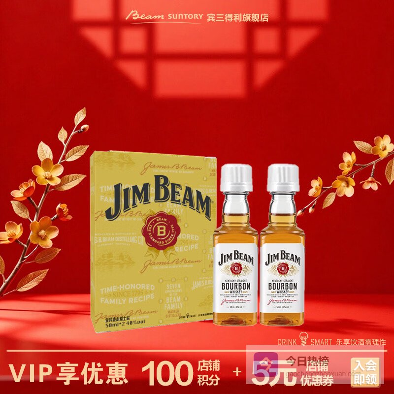 【京东自营】金宾白占边小酒伴礼盒调和型威士忌波本美国肯塔基州洋酒50ml*2¥