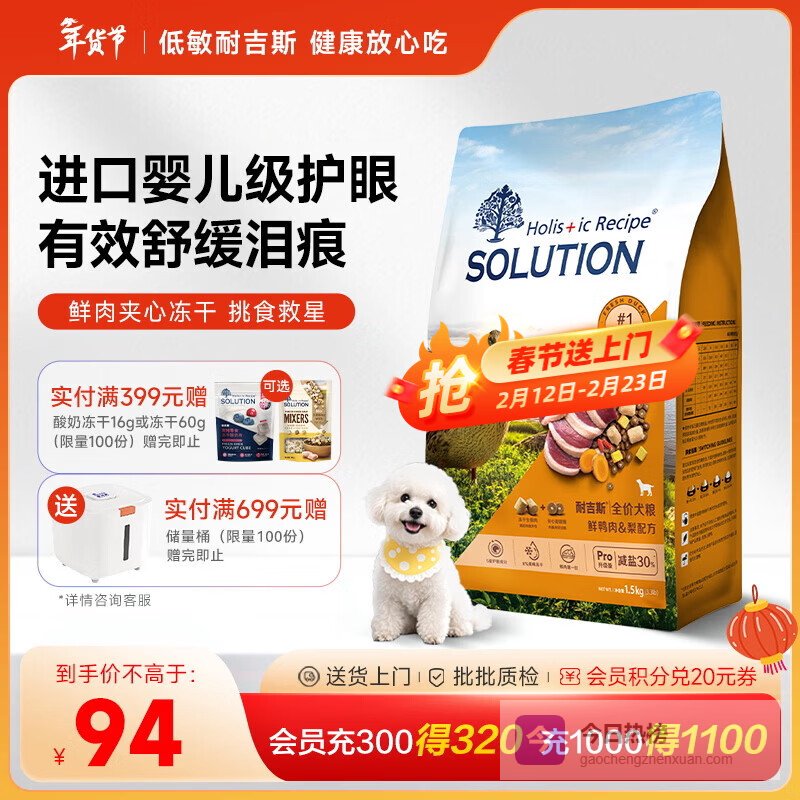推荐理由:低敏均衡粮、先进烘焙工艺、高鲜肉含量、护眼成分