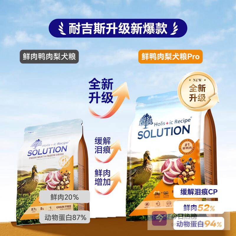 为了确保爱犬的营养需求得到充分满足,产品采用52%的鲜鸭肉,并配有94%的动物蛋白,极大提升了每一餐的营养价值。这种极佳的配方专门为成年犬和幼犬设计,帮助它们保持健康成长。同时,特别添加的护眼配方,融入进口叶黄素等多重成分,有效缓解狗狗的泪痕问题,呵护小伙伴的眼部健康。