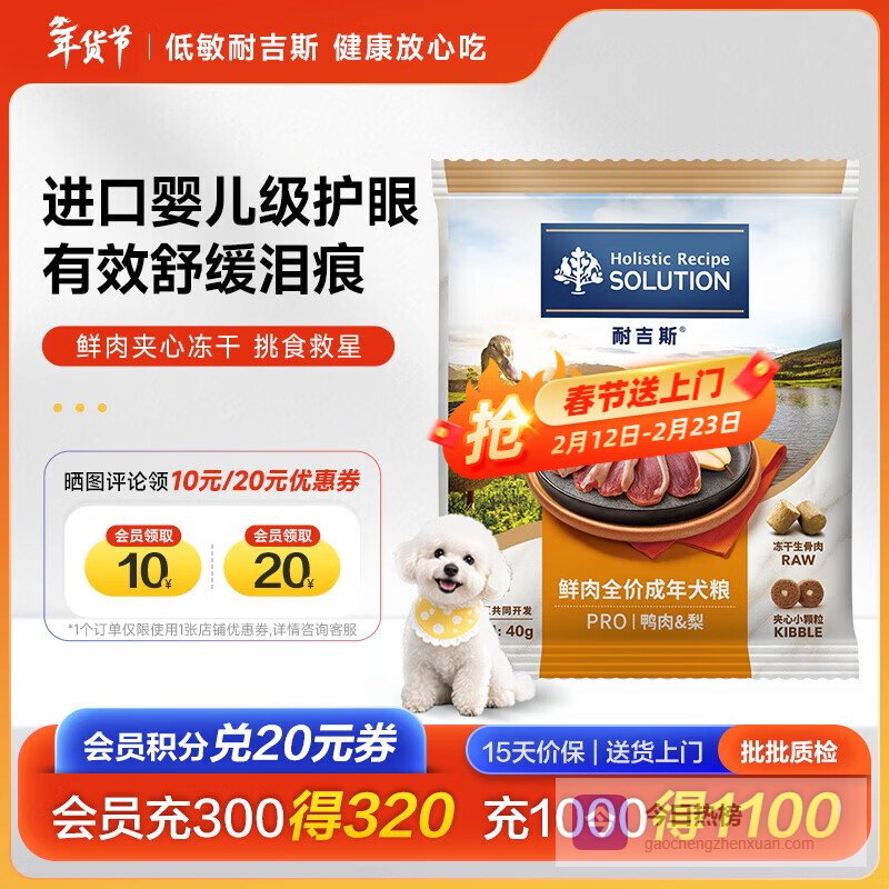 【品牌直营】耐吉斯鲜肉Pro夹心狗粮冻干成犬益生菌鸭肉梨泪痕管理爆款鸭肉梨狗粮试吃装40g¥