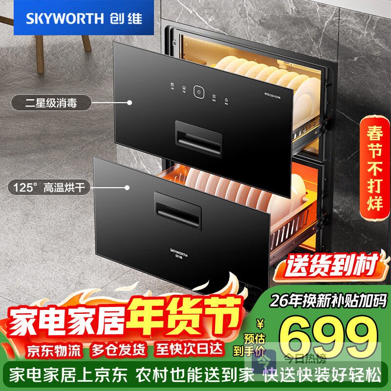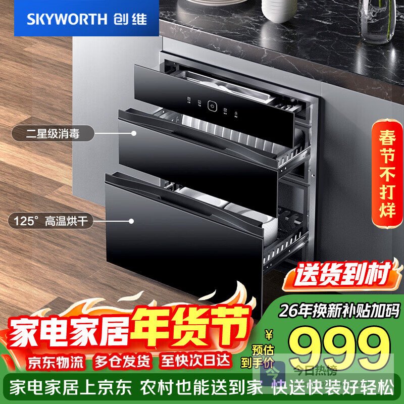 【京东自营】创维消毒柜家用嵌入式二星级消毒110L大容量三层三抽分区厨房碗筷餐具碗柜家电以旧换新X2¥