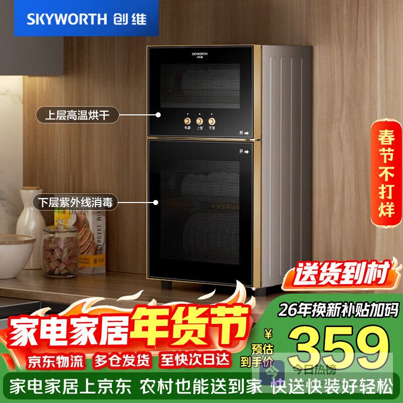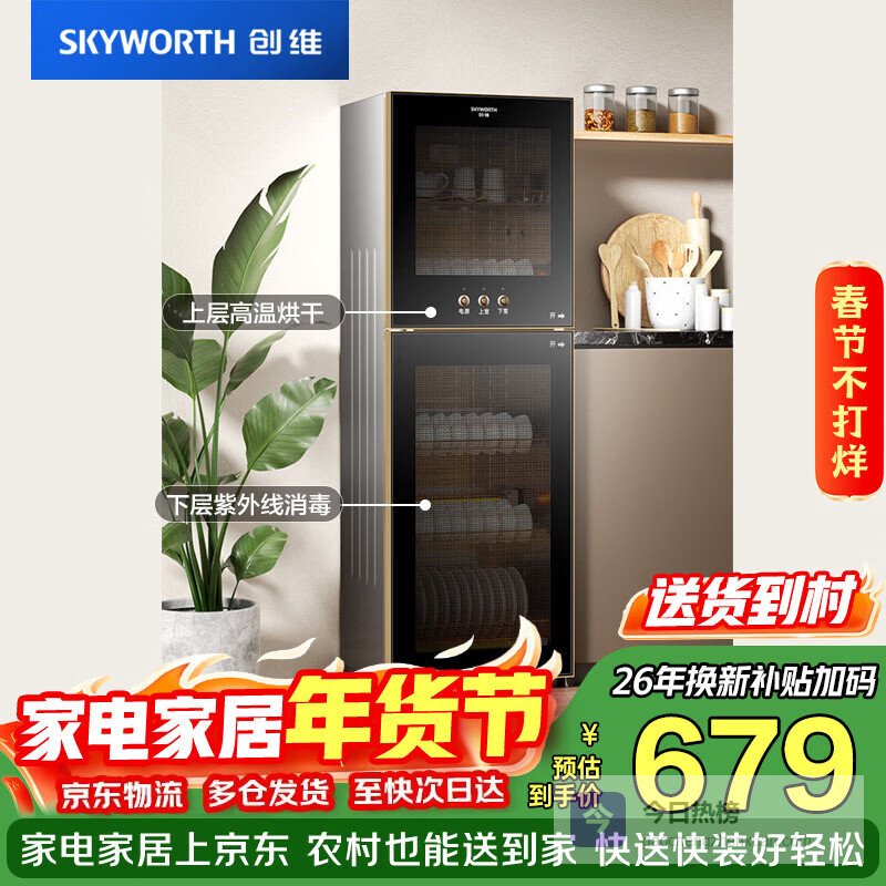 【京东自营】创维消毒柜家用小型消毒碗柜二星级高温立式迷你台式餐具碗筷厨房消毒烘干一体机收纳柜X25A¥