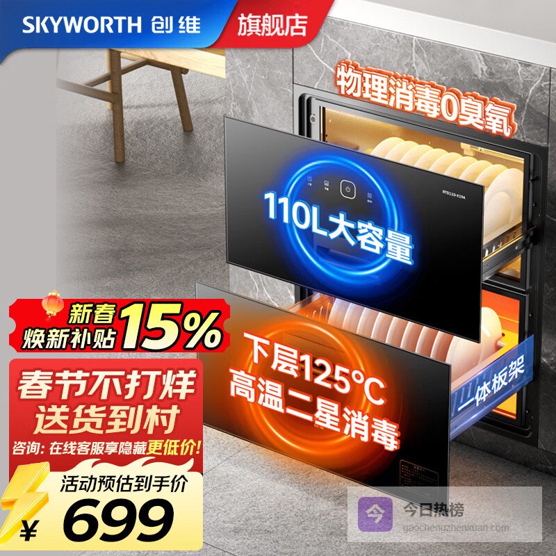 【品牌直营】创维消毒柜家用嵌入式消毒碗柜家用多功能碗筷餐具消毒二星级110升双层大容量二星级110L¥