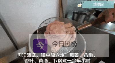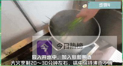 3.4 ▲ 低滚浸熟,保持嫩弹另起一锅水,下葱段、少许料酒,大火保持“沸而不腾”二十到三十分钟。关火再焖五分钟,鸡肉中心刚好达75℃,切开见血水却已熟透。