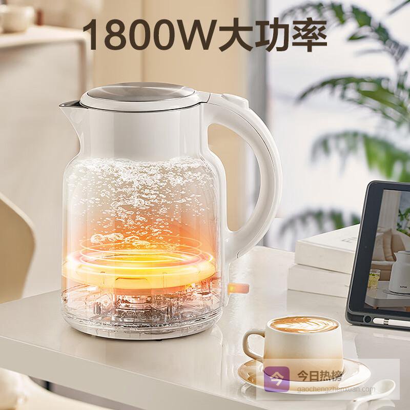 点评:这款苏泊尔电热水壶2升大容量,一次就能满足全家人喝水、泡茶或者冲咖啡,特别适合有家庭成员或办公室使用,日常不用频繁加水。它的1800W大功率,让水快速沸腾,基本不用等太久,泡茶、冲咖啡都更方便。内胆采用316L不锈钢,材质很稳定,抗腐蚀、无异味,喝水更安心,也更健康。