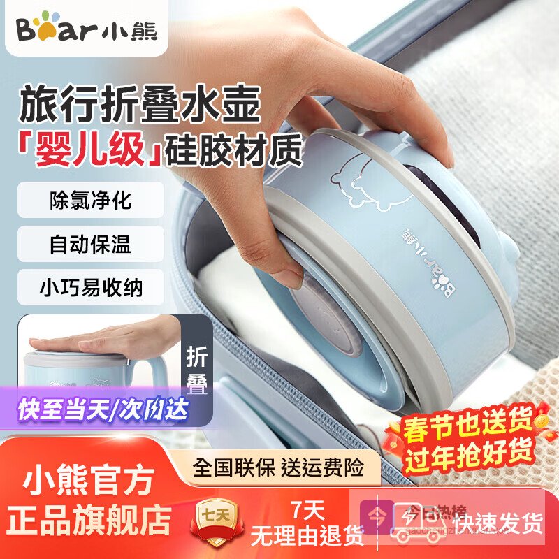 小熊(Bear)折叠电水壶随身便携式烧水杯旅行迷你小型恒温智能烧水壶家用养生冲奶保温不锈钢电热水壶 0.6L 【差旅必备】ZDH-A06G1折叠水壶¥